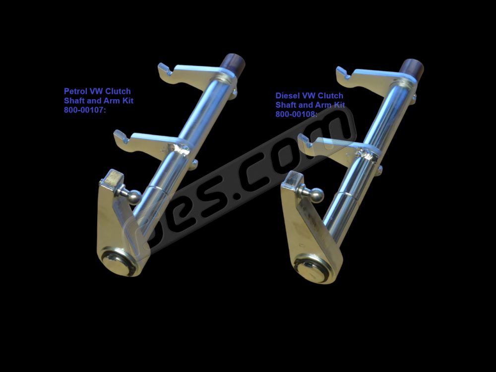 800-00108 is for applications which have the slave cylinder in the standard VW diesel location – i.e. standard VW diesel, TDi conversions and other VW inline engine conversions which use the standard VW diesel bell housing. Replaces VW clutch release shaft 091141701 and arm 251141713C.